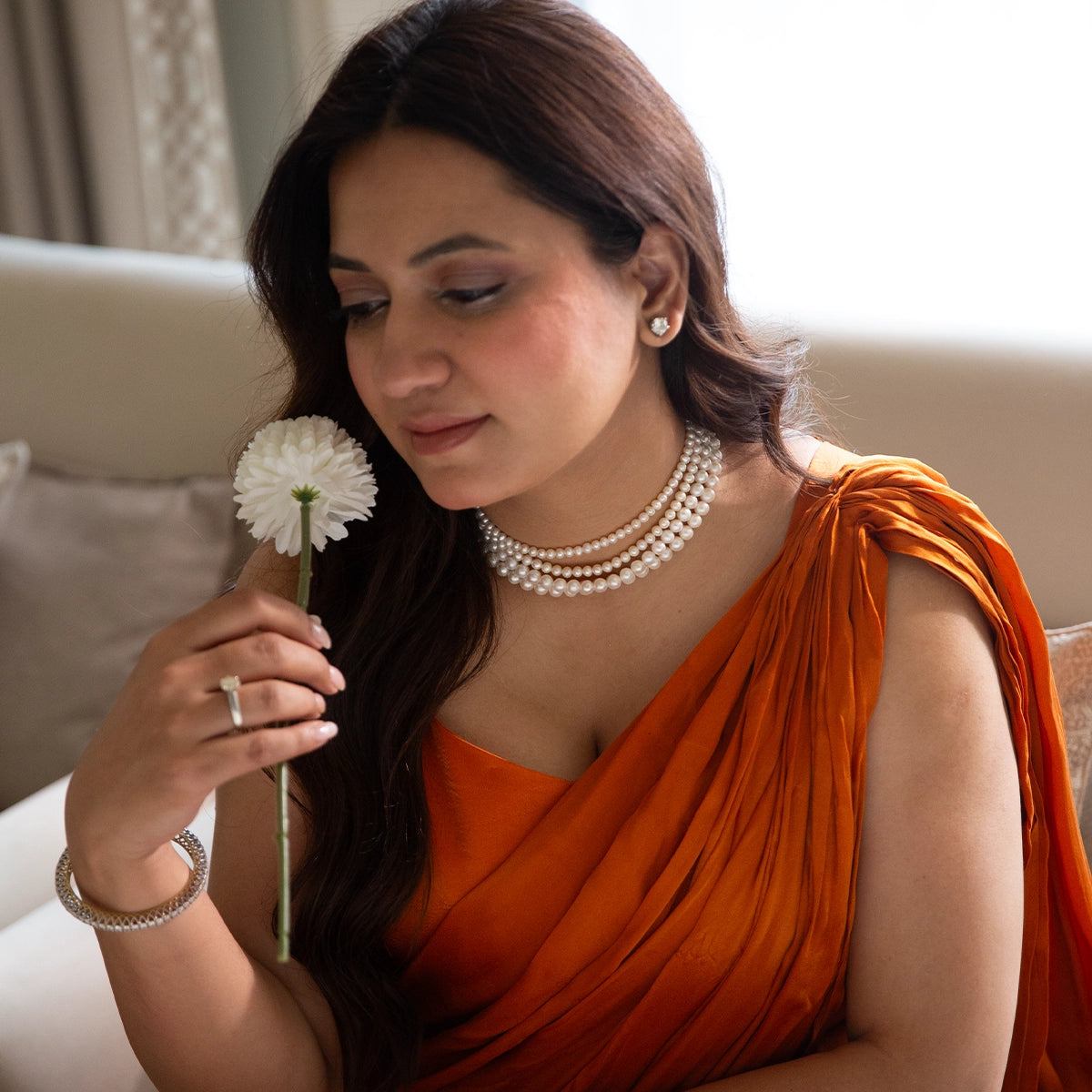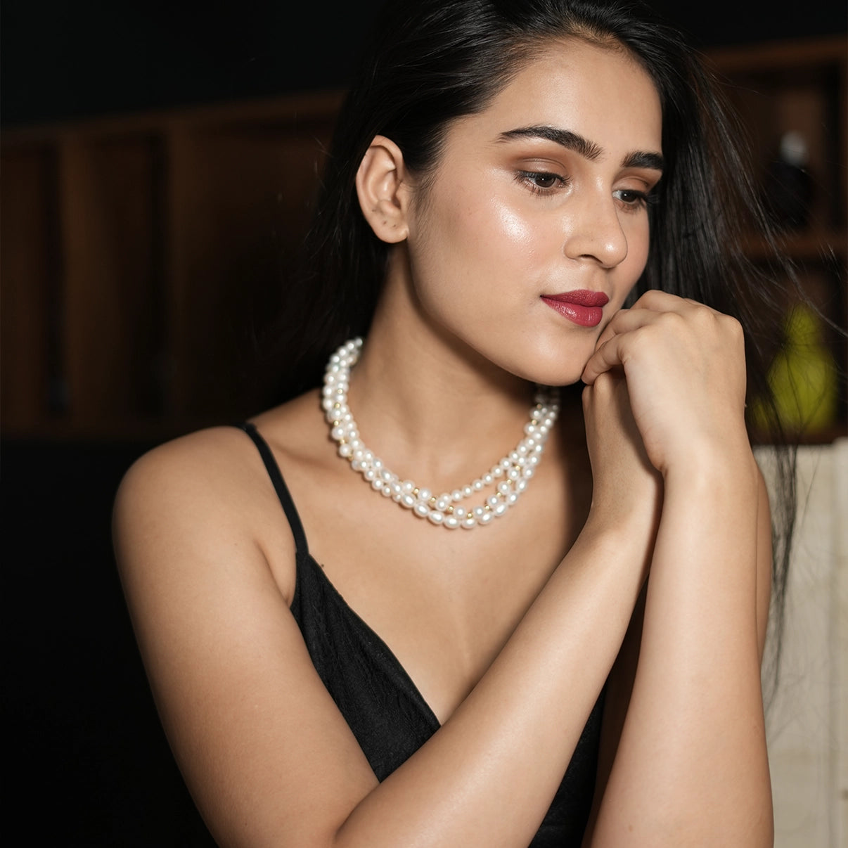 Aarna- Natural Round Rubies with an amalgamation of Pearl layered in a timeless Haar