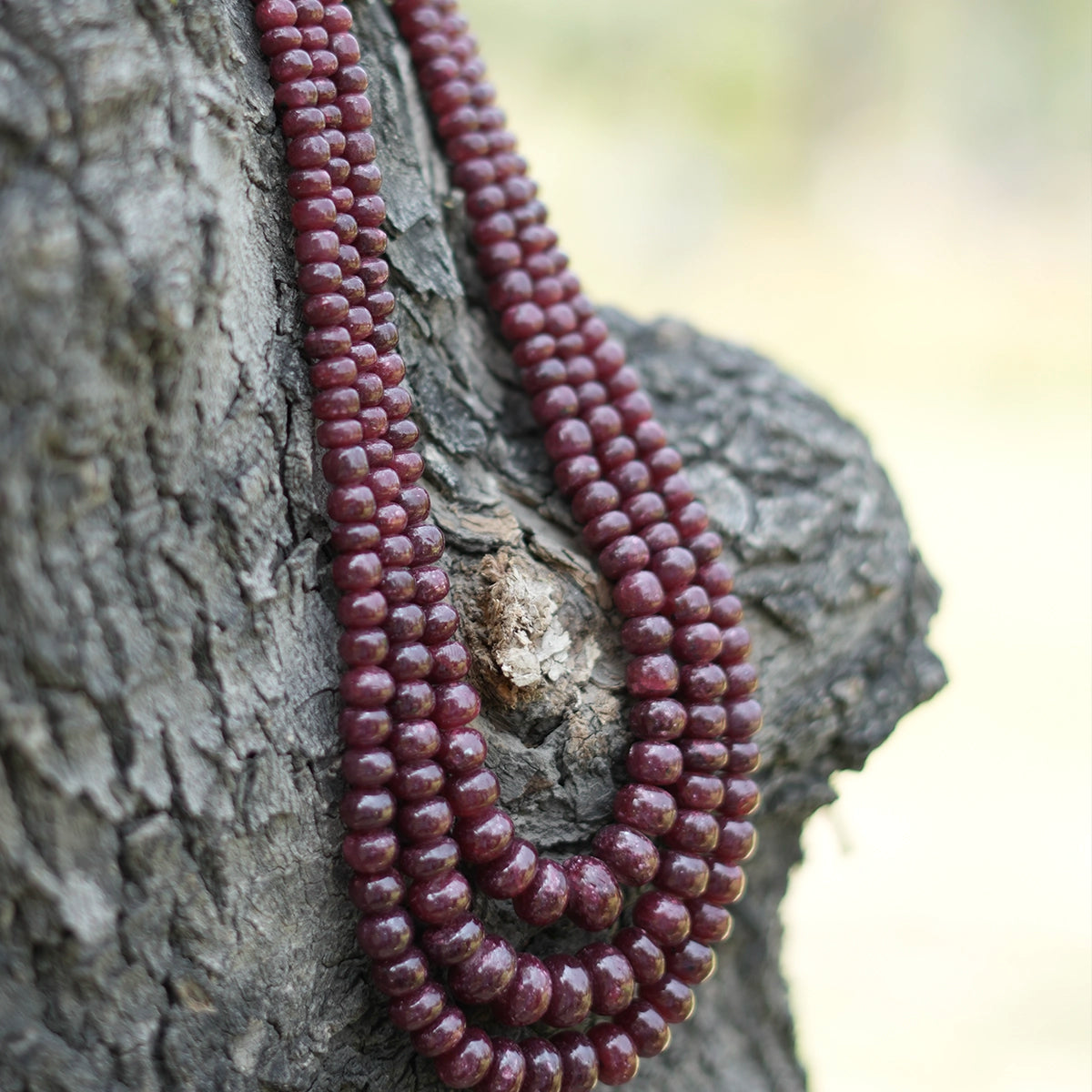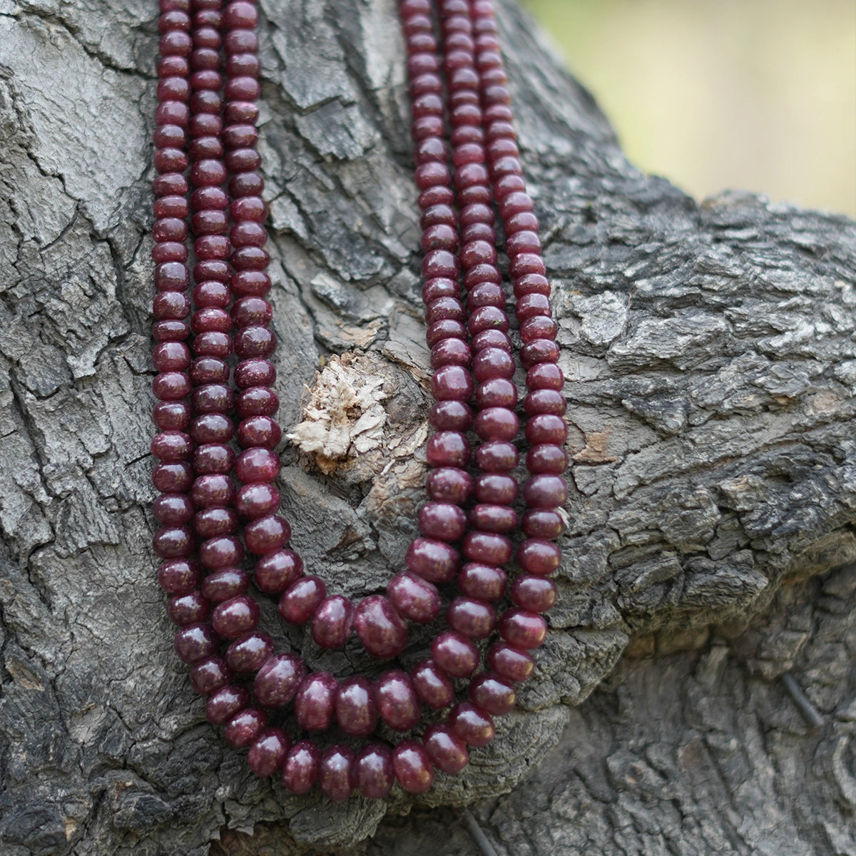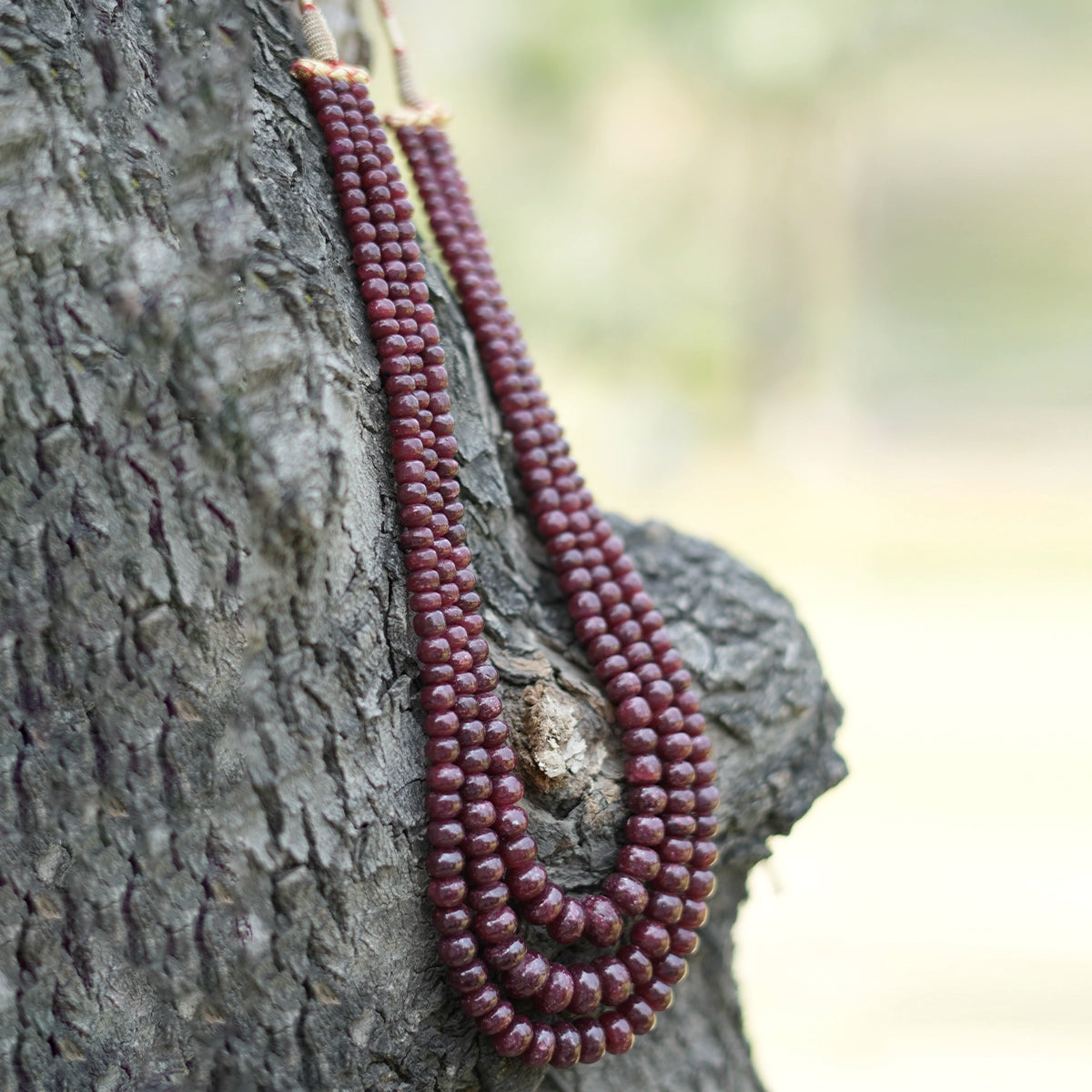 Adorn your neckline with the exquisite Gohar Rubies Necklace, featuring three stunning layers of radiant rubies. Perfect for adding timeless charm and sophistication to any occasion.
