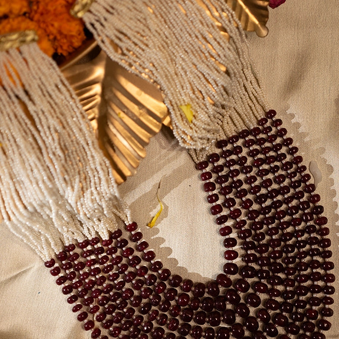 Aarna- Natural Round Rubies with an amalgamation of Pearl layered in a timeless Haar