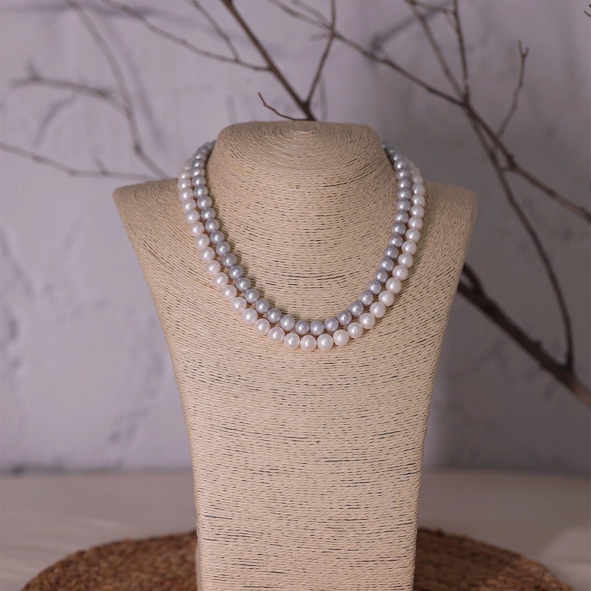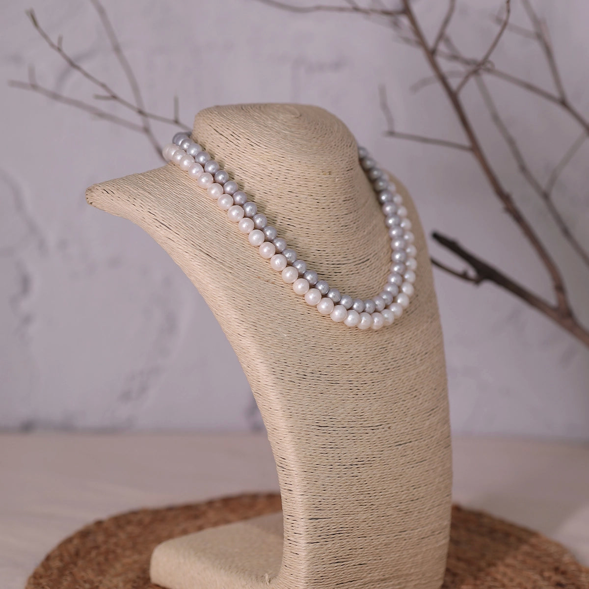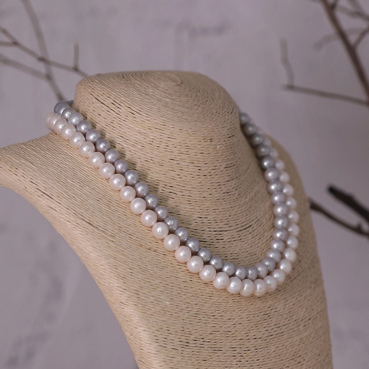 Silvia- Grey and White Double Layer necklace